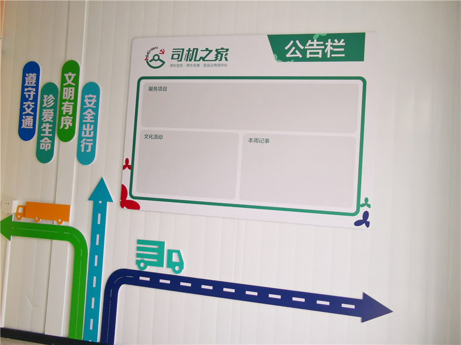 深圳寶安寶運(yùn)達(dá)物流園為進(jìn)一步實(shí)施“黨建引領(lǐng) 促健康物流”戰(zhàn)略思想,在深圳市寶安區(qū)寶運(yùn)達(dá)物流園興建“司機(jī)之家”物流文化展廳、展示墻建設(shè)項(xiàng)目,將“黨建引領(lǐng)、產(chǎn)業(yè)興旺、平安出行、治理有效、宣傳教育”等理念進(jìn)行設(shè)計裝修,旨在營造處處是課堂,時時受教育的宣傳氛圍,將監(jiān)督公示欄,公開服務(wù)承諾、服務(wù)內(nèi)容、經(jīng)營性服務(wù)項(xiàng)目、黨建課堂、政策方針及時傳達(dá)給司機(jī)群體。讓司機(jī)群體在工作、休息中也耳濡目染、陶冶情操,增強(qiáng)行為修養(yǎng),發(fā)揮黨建引領(lǐng)作用,倡導(dǎo)積極向上的文明生活,引導(dǎo)廣大群眾堅定跟黨走的決心。 勤蜂廣告設(shè)計有限公司,勇于當(dāng)擔(dān),寶安寶運(yùn)達(dá)物流園文化展廳、文化墻建設(shè)項(xiàng)目——司機(jī)之家從設(shè)計、裝修施工、廣告物料籌備到整體落地,耗時約1個月時間,科學(xué)合理的設(shè)計施工標(biāo)準(zhǔn)、規(guī)范化、科學(xué)化地建設(shè),讓項(xiàng)目順利完工驗(yàn)收,現(xiàn)已正常投入使用,得到各級文化建設(shè)部門的褒獎。