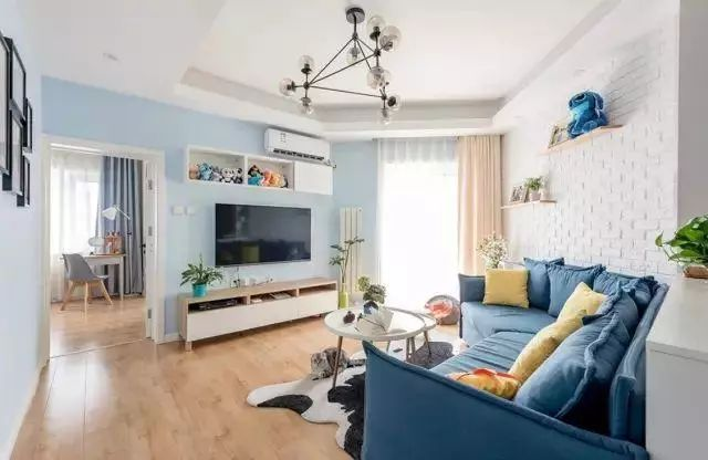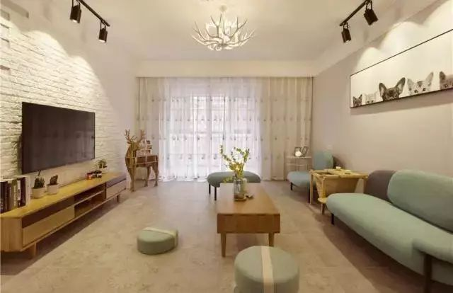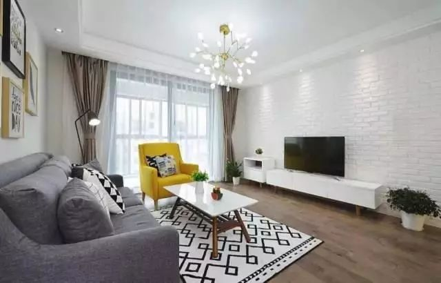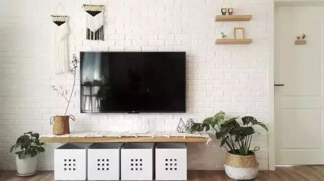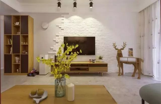 喜歡現(xiàn)代工業(yè)風(fēng)的年輕人,直接刷白的電視墻顯得太單調(diào)了,那么可以考慮刷一面文化磚電視墻,瞬間讓客廳顯得文藝精致不少。