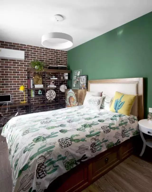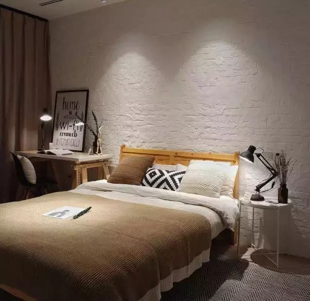 臥室里做文化磚的墻面,比較適合做工業(yè)風(fēng)的臥室,這種裝飾讓臥室更具文藝氣息,效果也是很棒的。